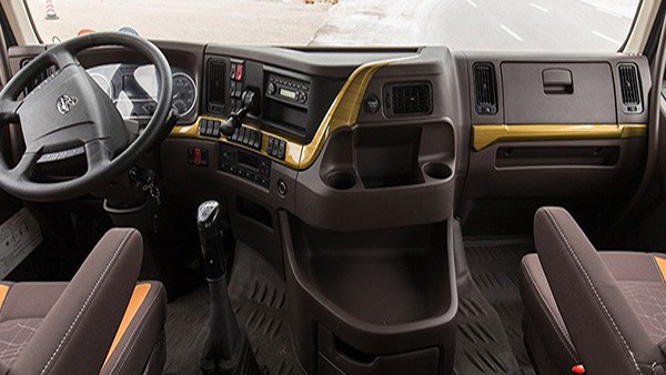 乘龍H7的內部采用高頂雙臥平地板駕駛室,室內可以輕松行走,駕駛生活兩不誤。