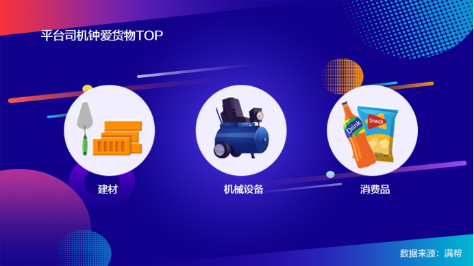 卡車司機是經濟建設的運輸人。中國是基建大國,加之近年來城市化進程的不斷加速,各地催生出了大量建材運輸需求,建材在各城市收貨比例幾乎都位列第一。同時,工業經濟也是強國之基,機械設備在司機承運貨品中也占有相當高的比例。而隨著互聯網購物的持續覆蓋,新零售的蓬勃發展,全國十幾億人口展示出了強大的消費能力,各類快消商品也是師傅們承運的重要貨品。而在幾年前,農業占比更大,這其中的變化反映了經濟發展的趨勢。